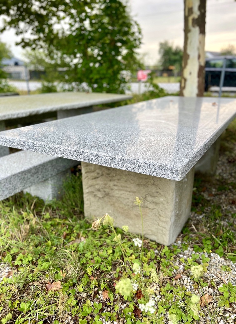Falk Ges.m.b.H aus Eferding in Oberösterreich  »  Sonstigestitle_li=Steintische & Steinbänketitle_li=Produkte  »  Großer Stein-Tisch mit zwei Sandstein-Sockeln und Granitstein-Platte
