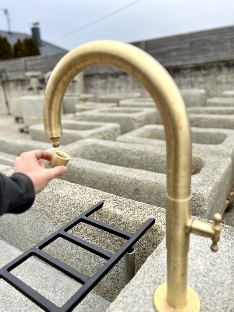 Falk Ges.m.b.H aus Eferding in Oberösterreich  »  Tröge halbrundtitle_li=Stein- & Brunnentrögetitle_li=Produkte  »  Nr. 203 Granitstein-Trog mit Messing-Armatur und Zubehör