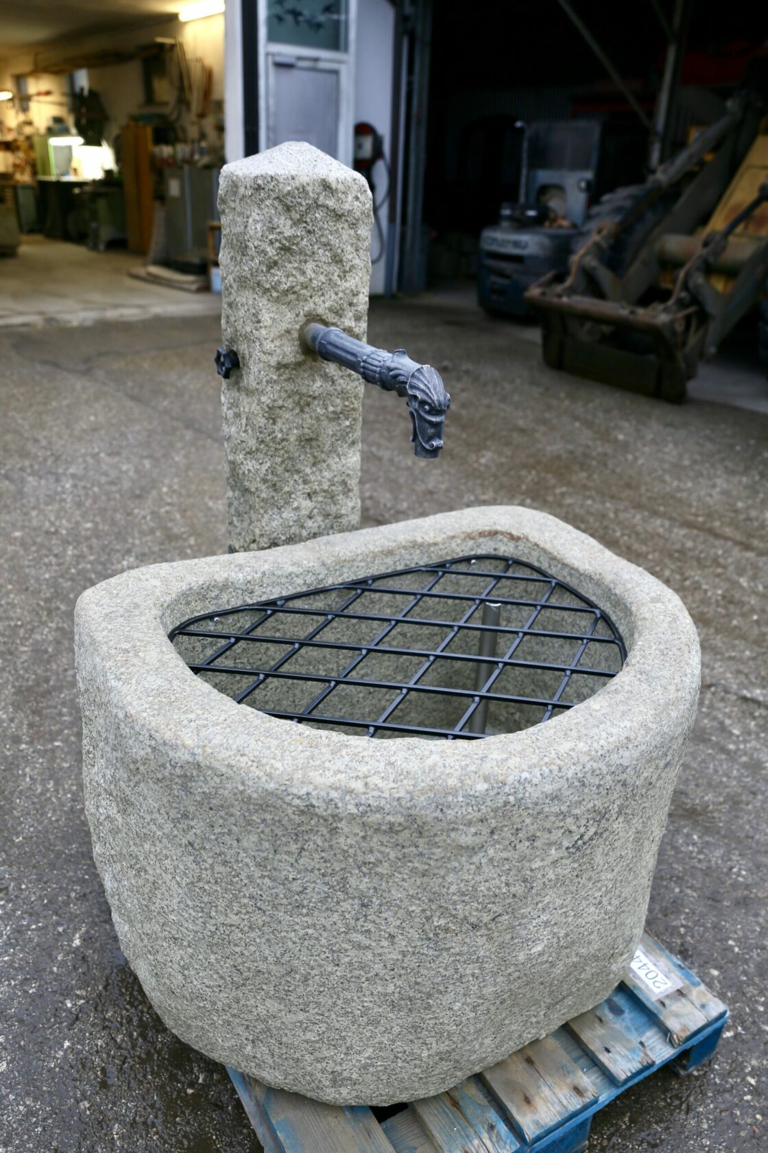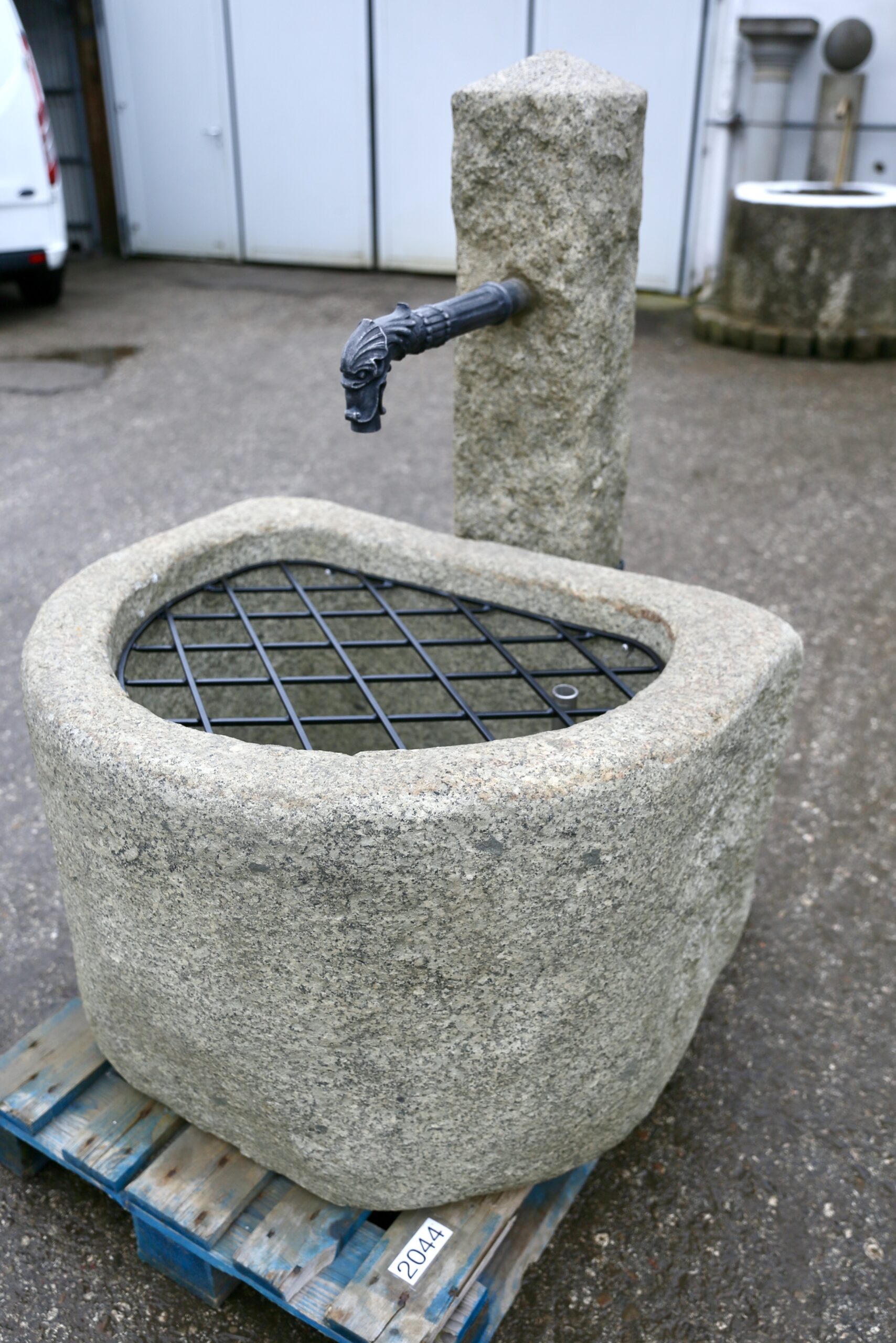 Falk Ges.m.b.H aus Eferding in Oberösterreich  »  Tröge halbrundtitle_li=Stein- & Brunnentrögetitle_li=Produkte  »  Nr. 2044 Halbrunder Granitstein-Brunnen mit Brunnensäule