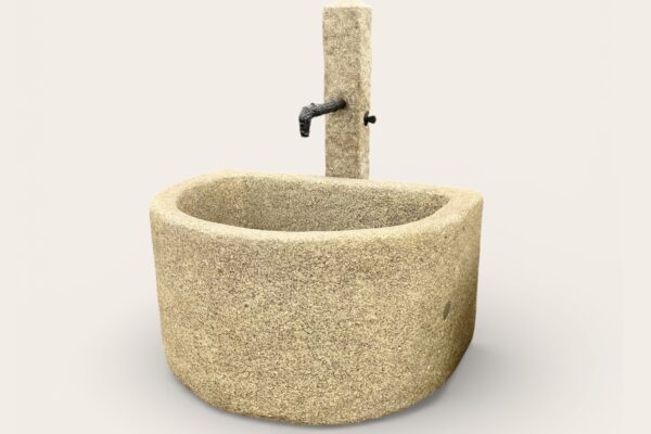 Nr. 225 Halbrunder Granitstein-Trog mit kleiner Messing-Armatur und weiterem Zubehör