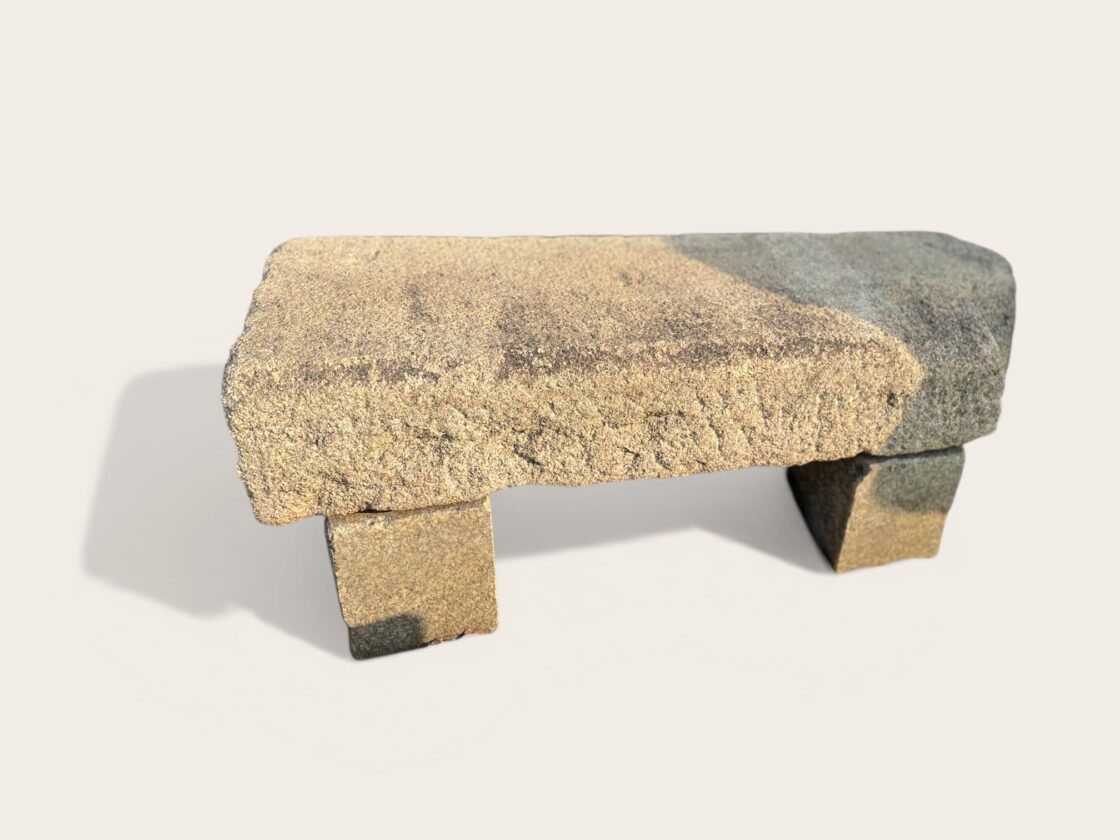 Hier eine rustikale Gartenbank, aus altem Granitstein gefertigt.